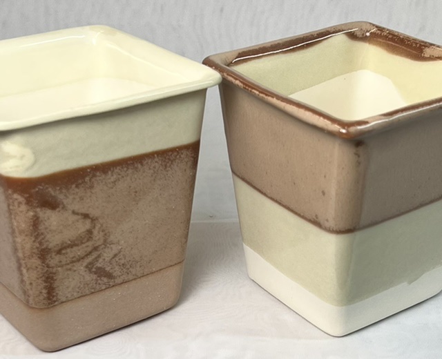These are slip-cast pieces. L4410P at cone 06 (back), cone 6 (front)