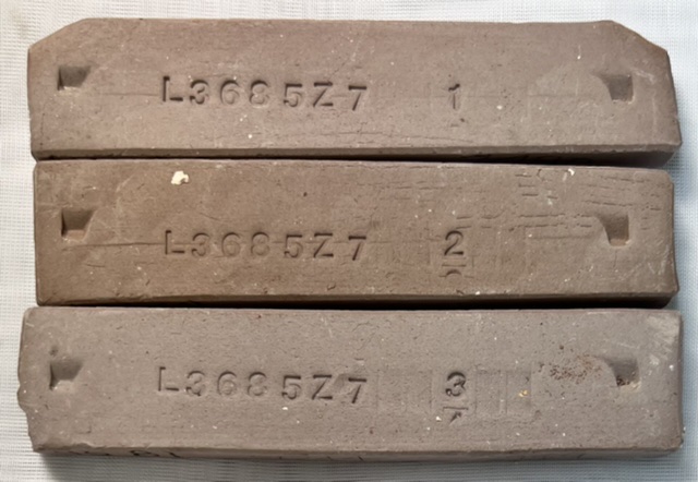 The outside glaze is Spectrum 336. The G3879C is our recipe, a base transparent that we have been tuning to reduce the thermal expansion as much as possible to fit our 50:40:10 BallClay:Dolomite:Nepheline body. The result is glaze compression, it is now under enough compression on the inside of this piece that it is forcing it apart. Testdata SHAB - Shrinkage/Absorption