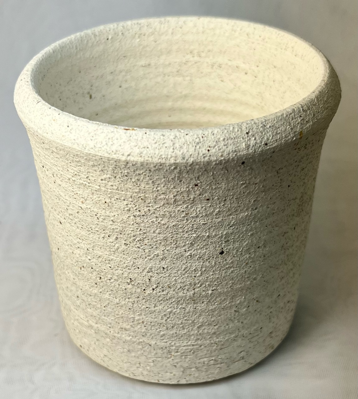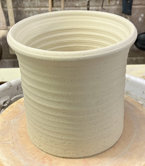 About 5lbs of clay easily throws to a 8x8" inch thin walled vessel. If feels smooth even though it contains 20% coarse grog. At leather hard it feels like soap! L4543 kiln shelf