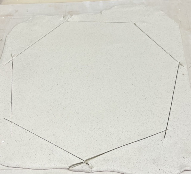 Although very soft, it easily stretched, with minimal rolling to make a test kiln shelf. It dried to 4.5mm thick in one day without cracking (between two sheets of Gyproc). This body could work well for kiln posts