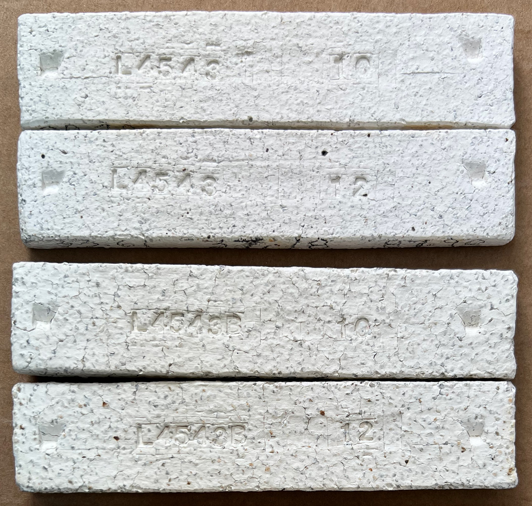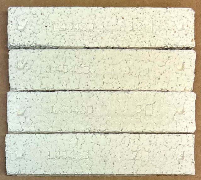 It is exceptionally easy to stir the kyanite into the sodium silicate, it is ready to form in 10 seconds. Fired bar of L4608 kiln patch
