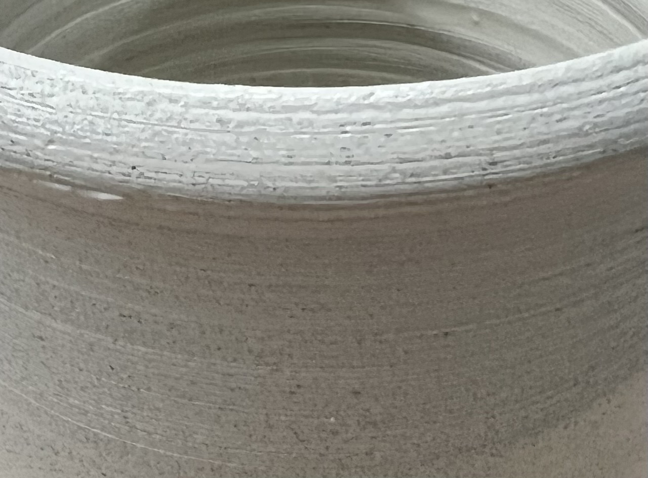 Total:103.00 Notes In a previous mix we tried STKO grog but this Kyanite is much finer-grained, a pleasure to work with in the plastic state. Drying shrinkage is very low also. Pictures L4543C thrown surface shows texture