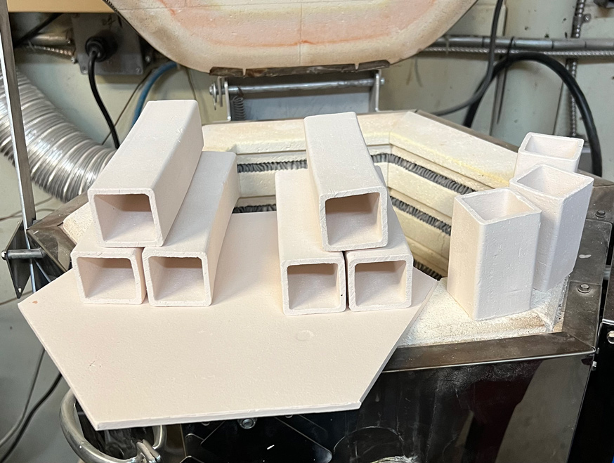 The shelf dried and fired very flat. Posts extruded very well even though the clay was very soft. It was possible to get a more precise cut because of the finer particle size compared to L4543B. L4543C fired bars