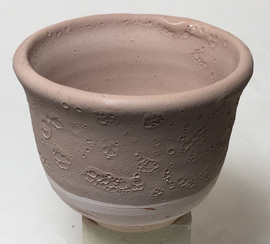Notice the bubbles. These are a product of the spodumene, but also likely the soda ash. They create the blisters on the surface of the dried glaze. L3916 Bizen duplicate with G3840 Shino Glaze - Cone 10R
