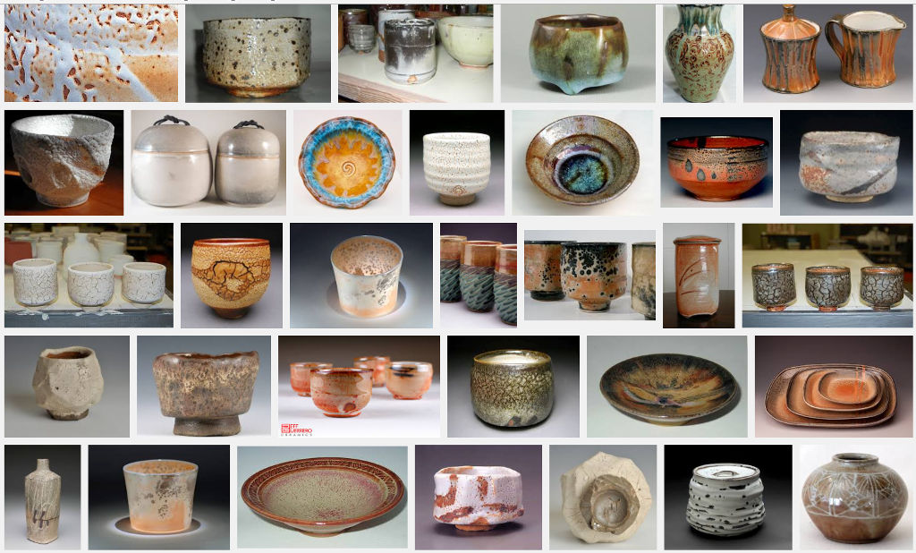 Top left to bottom right (mesh): Bizen clay and Shino glaze development