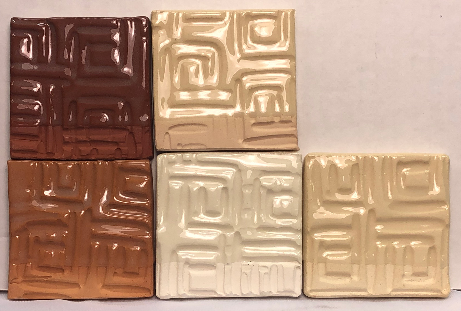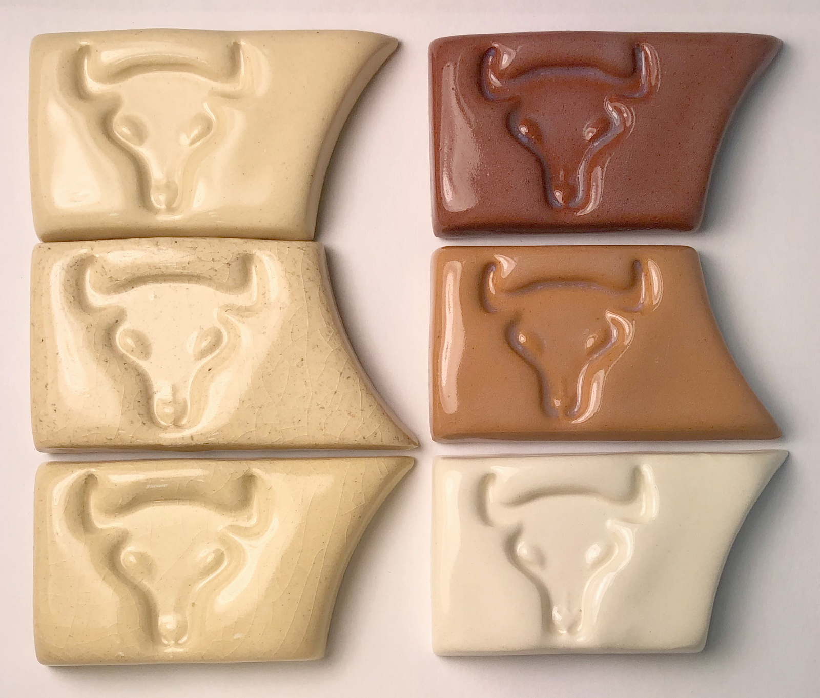 Uses Cone 03 soak-soak-slow cool schedule. G1916Q on L215, L212, L210, L213, Buffstone at cone 03