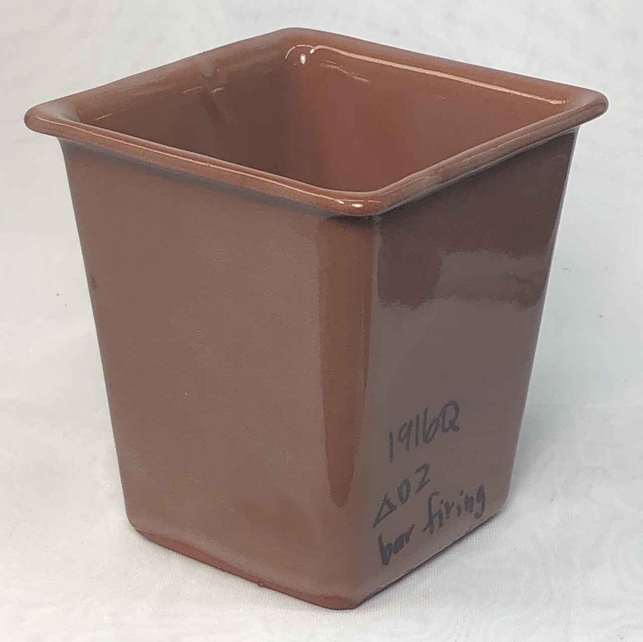 Very dense and strong at cone 2, it’s fired surface is almost velvety, very pleasant to touch. L4170B terra cotta at cone 02 with G1916Q