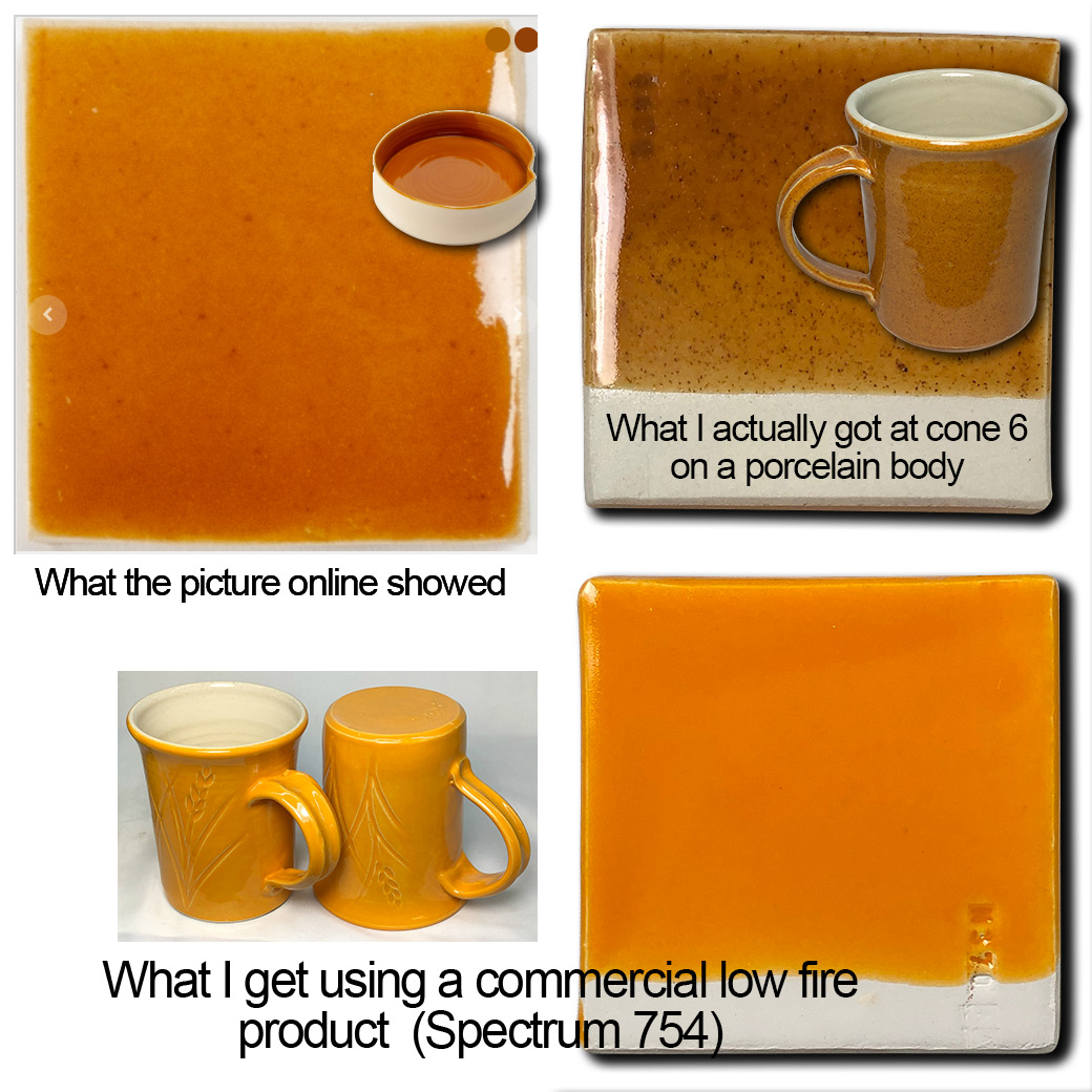 The glaze recipe promised more color than it delivered, but delivered something it did not promise, a good transparent. The orange is a mechanism of that transparent.