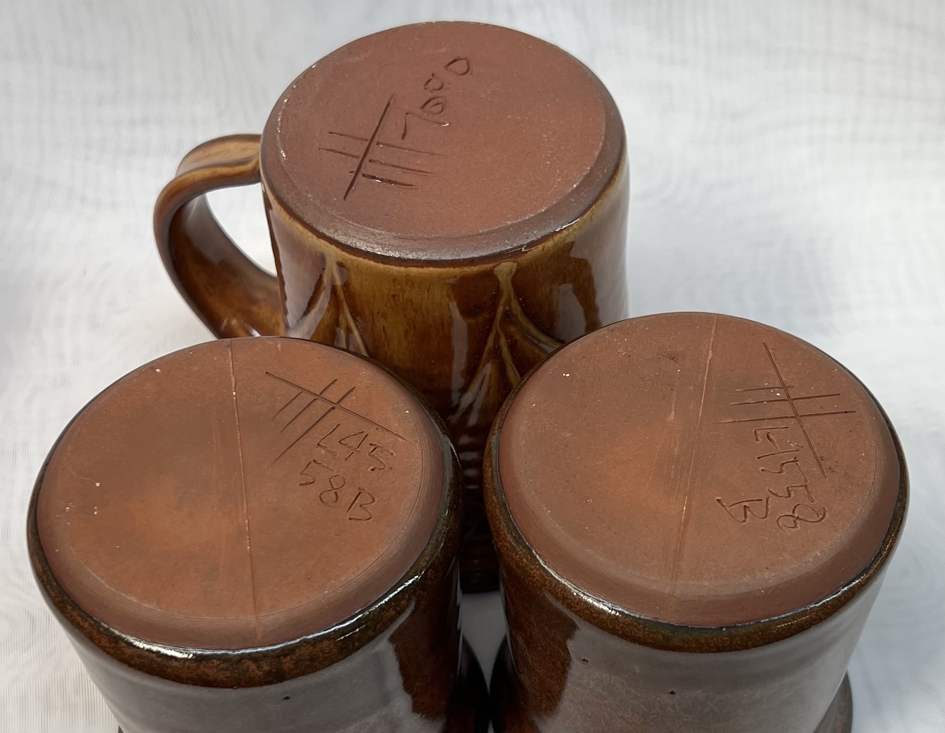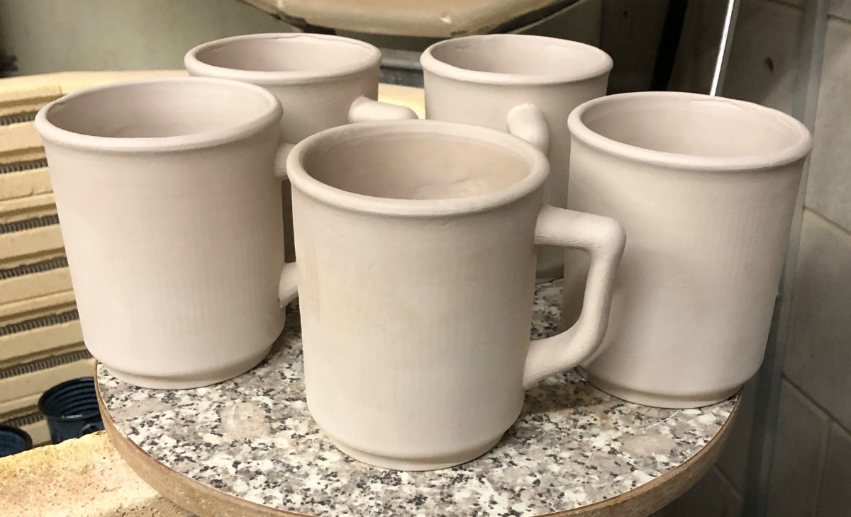 The body of the mug was made using a combination casting - jiggering process. The handles were cast. L3798C cast/jiggered mugs