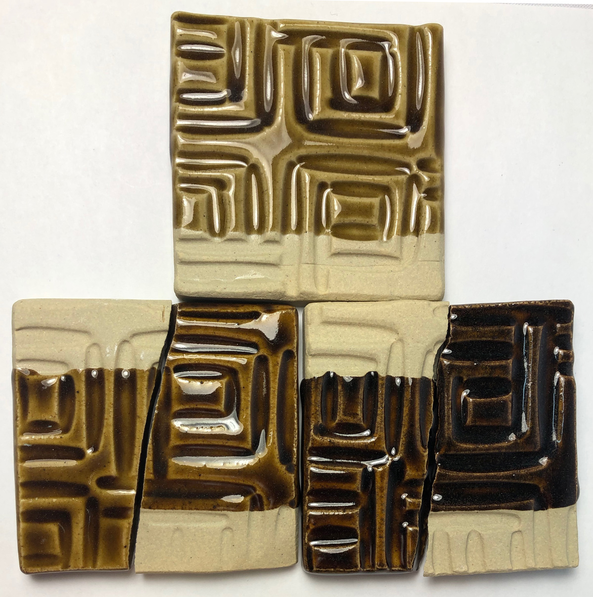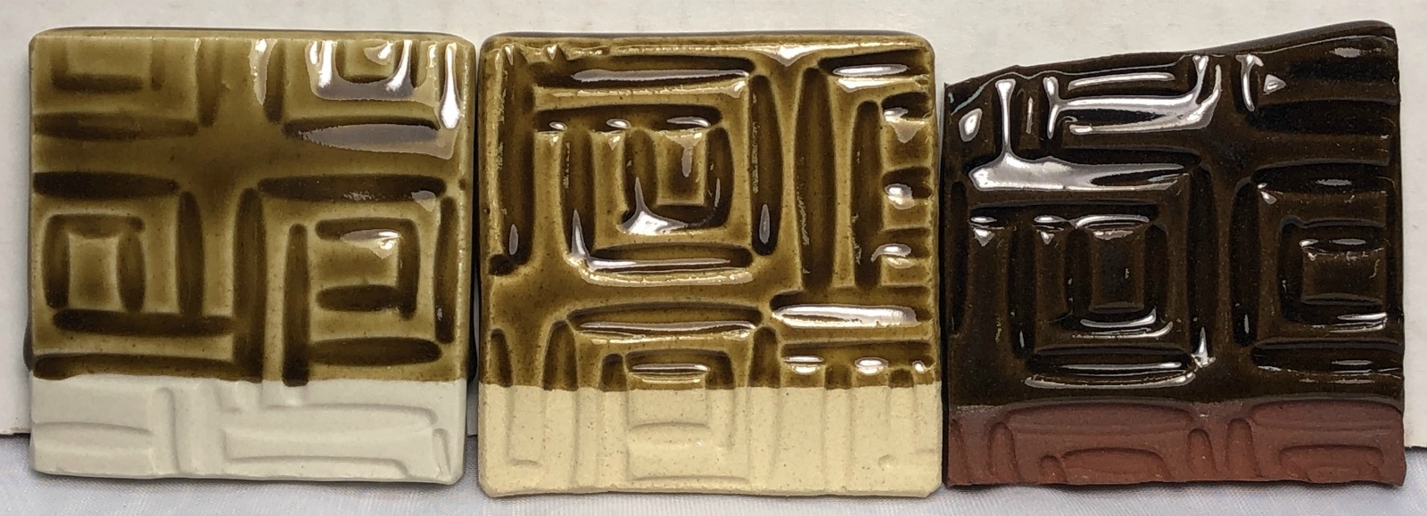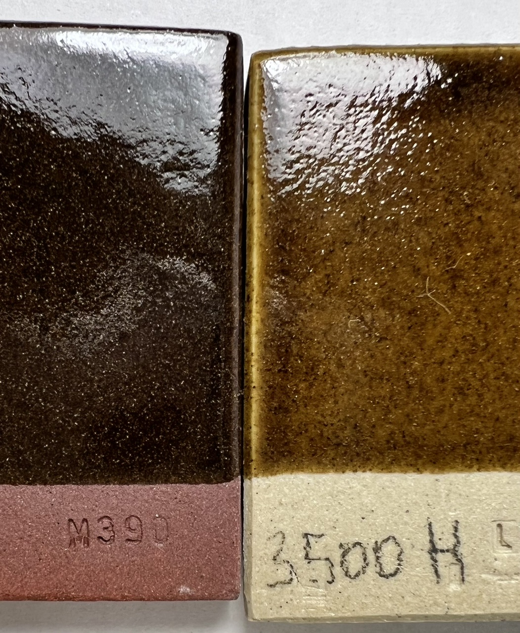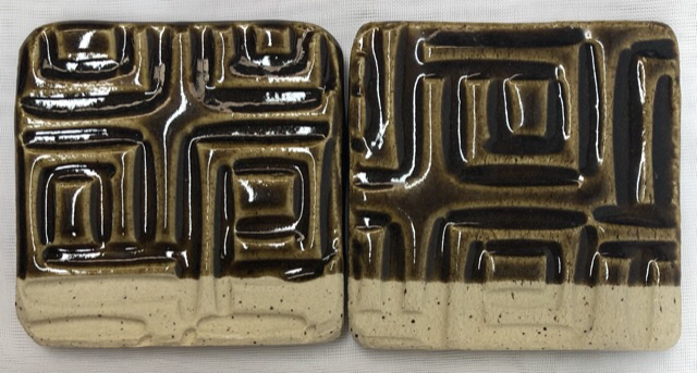Fantastic result. Super glossy. These tiles are very slippery, cannot stack them on top of each other! G3903, L3500G, GA6-B on Coffee Clay (insides)