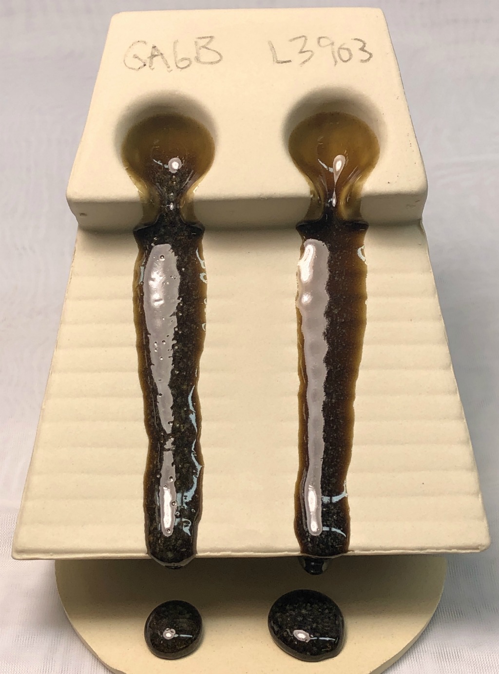 Notes This version of the Alberta Slip base honey glaze melts the best. It works well down to cone 4. It produces an incredibly glossy surface (pieces will slide out of your hands easily if you do not hang on to them firmly, tiles cannot be stacked because they will slide off each other). Pictures GA6-A vs G3903 using FZ-16 frit at cone 6