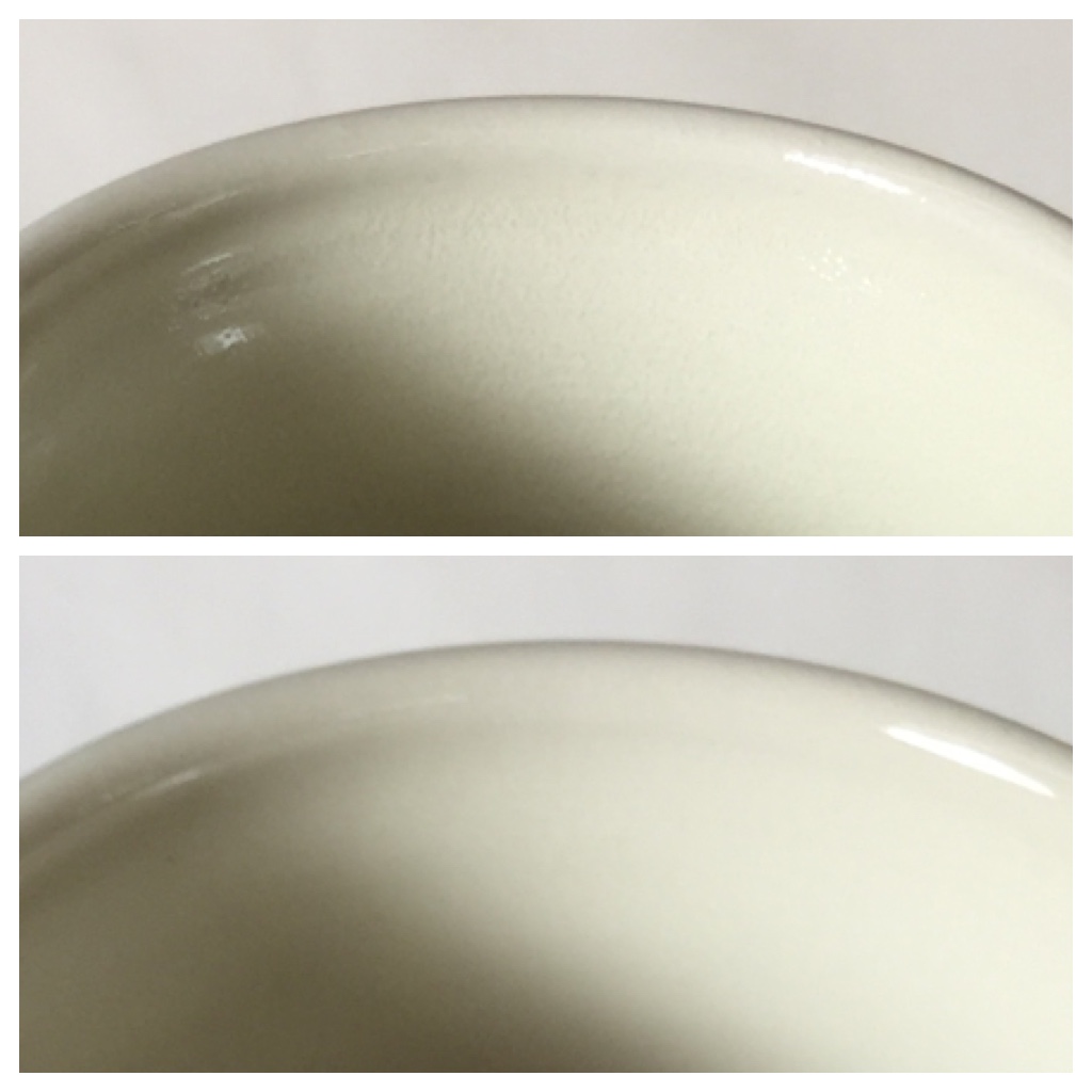 Bottom is a little matte, as well as sides (because of clouds of micro bubbles). Just below the rim it is glossy. XML (to paste into Insight) <?xml version="1.0"?> <recipes version="1.0" encoding="UTF-8"> <recipe name="Campana Clear Low Expansion (no Spodumene)" keywords="3134, Spodumene, Zinc" id="99421" key="hvPwZdTk" date="2016-12-02" codenum="G3813C" email="strawdogs@hotmail.com"> <recipelines> <recipeline material="Fusion Frit F-493" amount="9.000" tolerance=""/> <recipeline material="Ferro Frit 3195" amount="18.000" tolerance=""/> <recipeline material="EP Kaolin" amount="25.000" tolerance=""/> <recipeline material="Silica" amount="34.500" tolerance=""/> <recipeline material="Wollastonite" amount="27.000" tolerance=""/> <recipeline material="Zinc Oxide" amount="9.000" tolerance=""/> </recipelines> </recipe> </recipes> Born: 2015-06-23, Modified: 2016-12-02 11:48:21 |