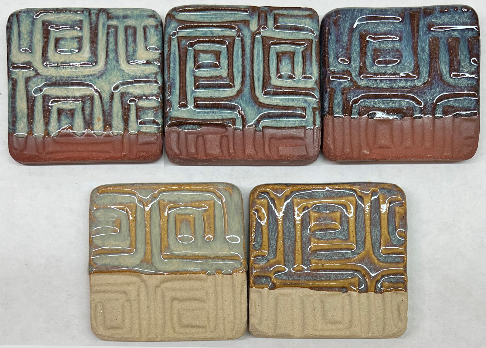 Left tiles are GA6-C cone 6 C6DH firing. Would titanium work instead of rutile? Yes.