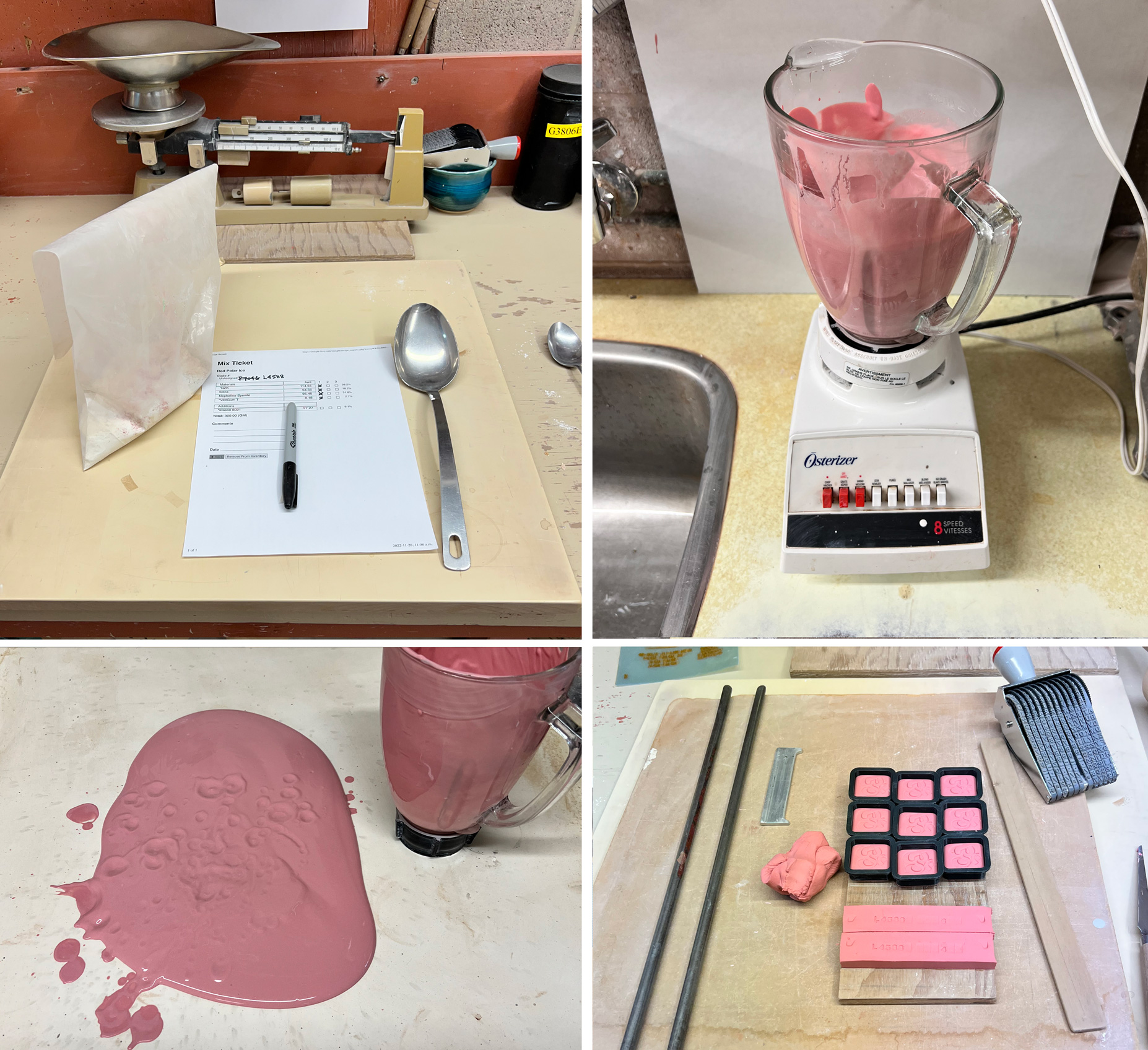 Notes 300g powder and 1000g water were blender mixed on high speed to get the best possible particle wetting (1000g is a lot of water but with less the slurry was too gelled). Pictures Mixing a 300g batch of L4588 red porcelain