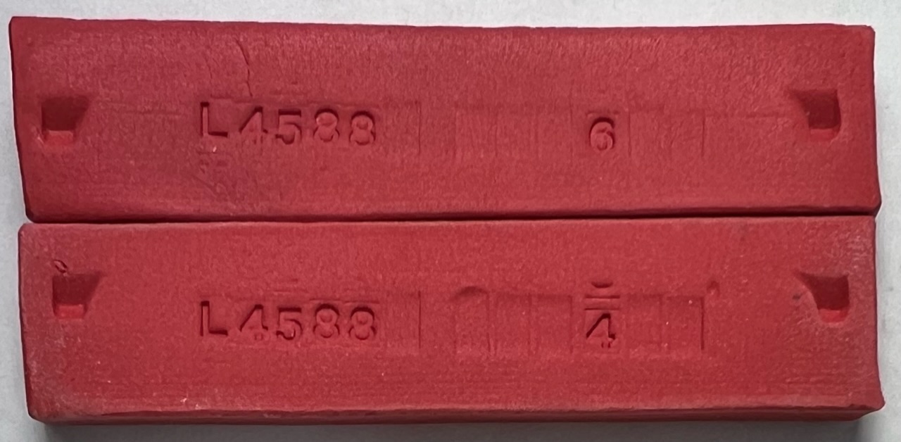 We also made SHAB test bars to compare the firing shrinkage of this with the pink and blue versions. L4588 Red NZK Cone 6 Porcelain at cone 6