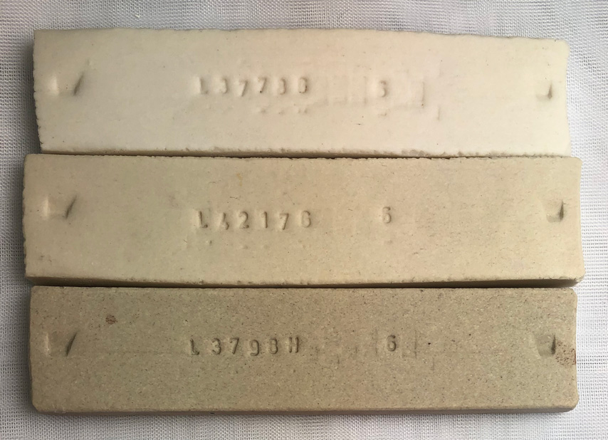 Total:100.00 Notes Because this employs Grolleg kaolin, it fires much whiter than bodies made using North American kaolins. And it will be more vitreous. Pictures L3778G cone 6 Grolleg casting body vs. others