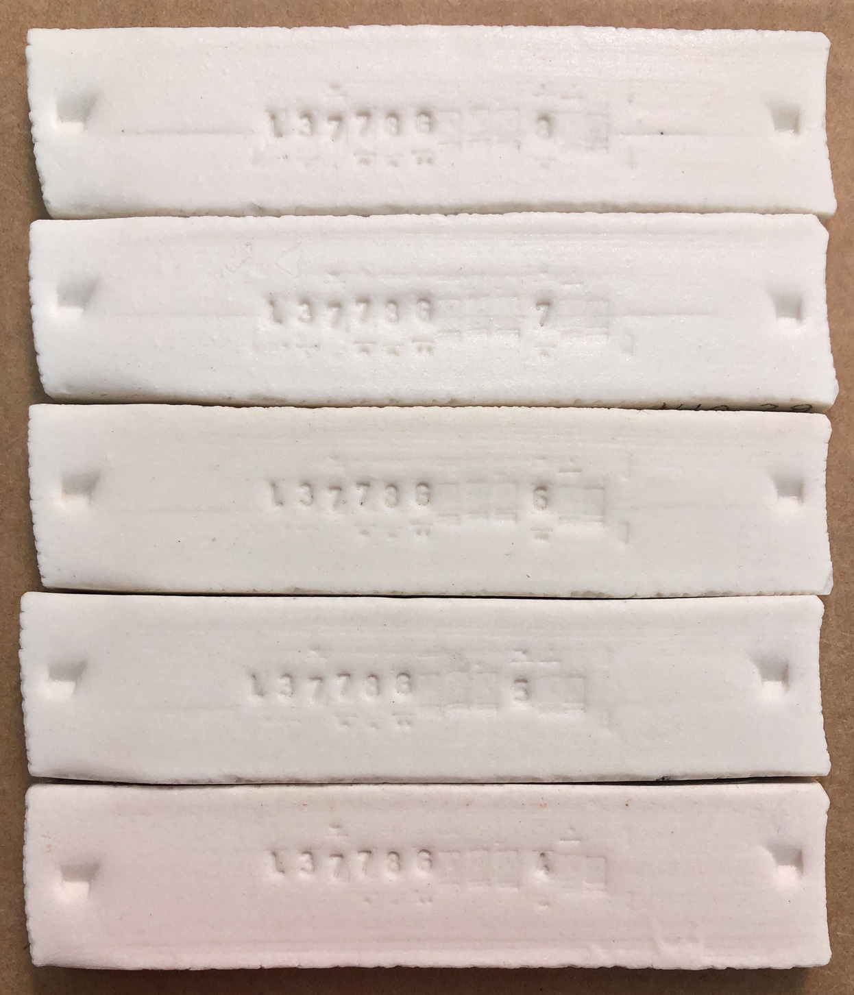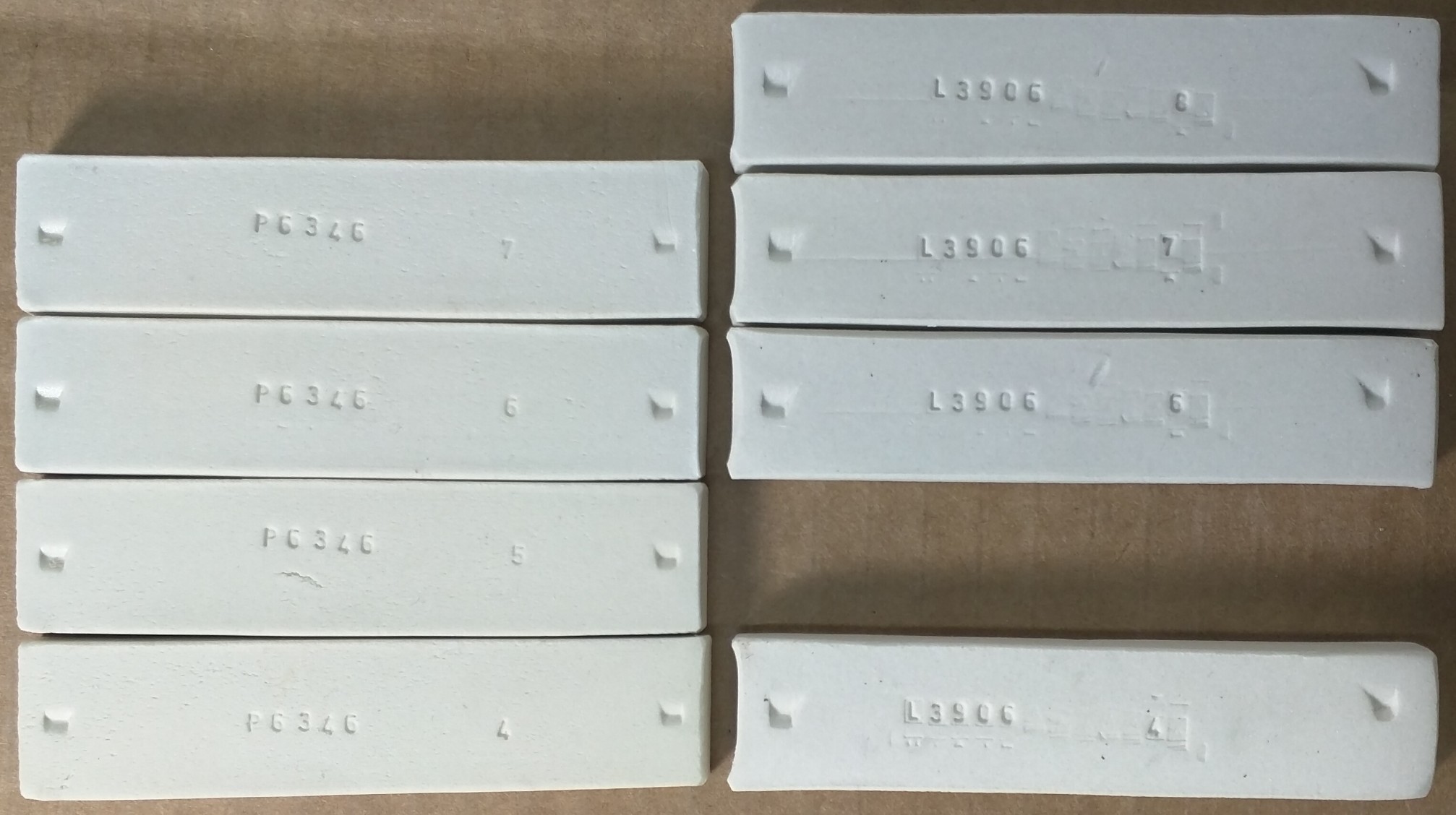 Fired strength is very good (under the hammer). Rather than shatter, it simply broke cleanly into to pieces. L3778G Cone 6 Translucent Grolleg Casting fired bars